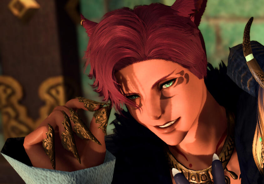 summary. Having met the first time by simply running into each other on the market streets of Ul'dah & then coming to realize "Arty" was their mutual connection. Well the two fashionista's quickly became friends over gushing about how fun it was to doll up Arty.However it wasn't until T'valis simply broke into the "Satraps, Stitches & Scales" before the grand opening night to behold it for himself, that Nithe realized they probaaaably just needed to corral the glimmering miquote by simply hiring him! Thus offering him a job so the poor locks could be saved was one of the best decisions Nithe could have made.Now with T'valis assisting at the "Satrap, Stitches & Scales" the fabulous miquote truly has become invaluable in working the room with clients, being the in-house photographer, giving perfect color pairing suggestions & being an dutiful assistant at the shop while Nithe shows T'valis how the ropes of fashion & jewelry making works behind scene world of fashion works.